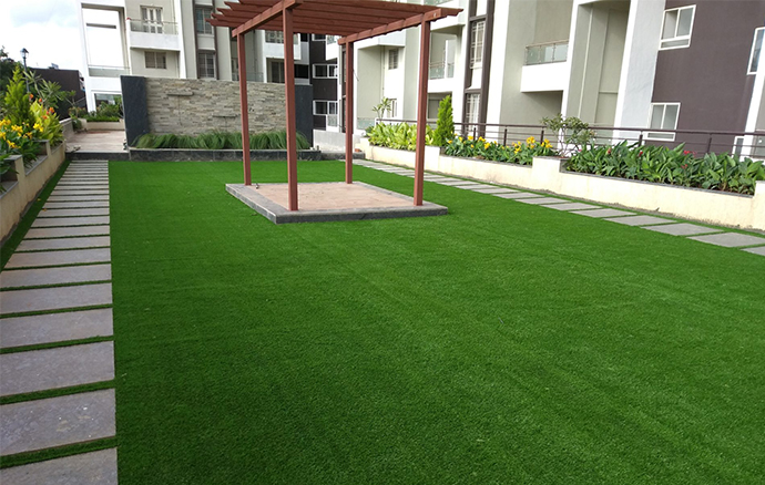 grass used, price depends upon this factor. For instance, in playgrounds and high foot traffic areas hard artificial grasses use and in lawns we use soft artificial grasses so that they do not prickle on the foot of the kids